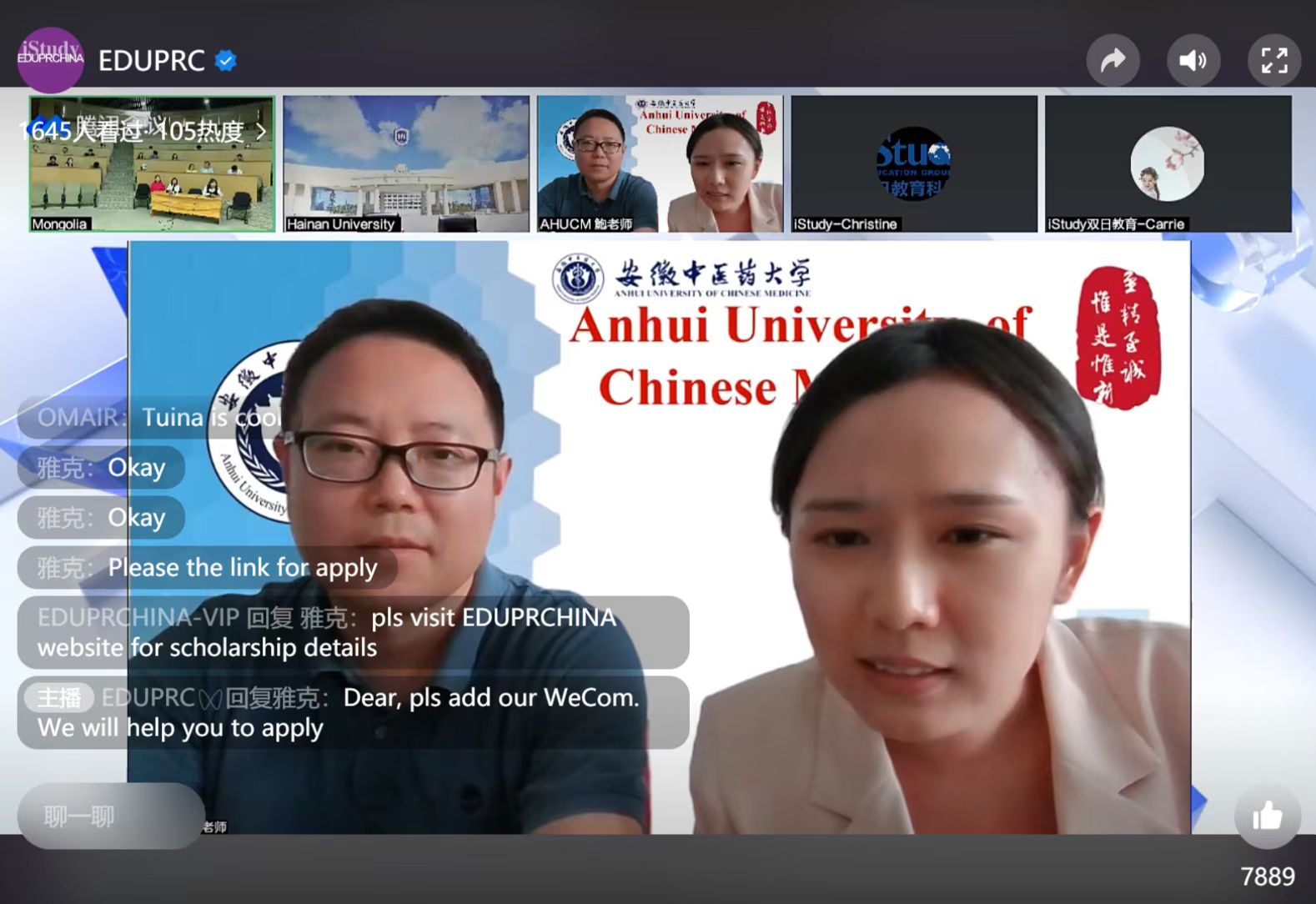 本次宣讲会共有超过1500名师生参与观看,为我校本年度留学生招生工作的开展奠定了基础。