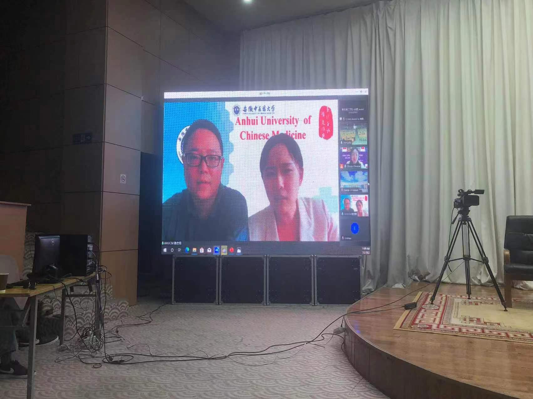 我校介绍环节,先播放了留学生招生部门剪辑的招生视频,随后外事办的招生老师就安徽中医药大学的特色、招生项目、招生要求及合肥城市特有魅力展开介绍,并在最后问答环节就学生关心的奖学金等问题进行了重点阐述和耐心解答。