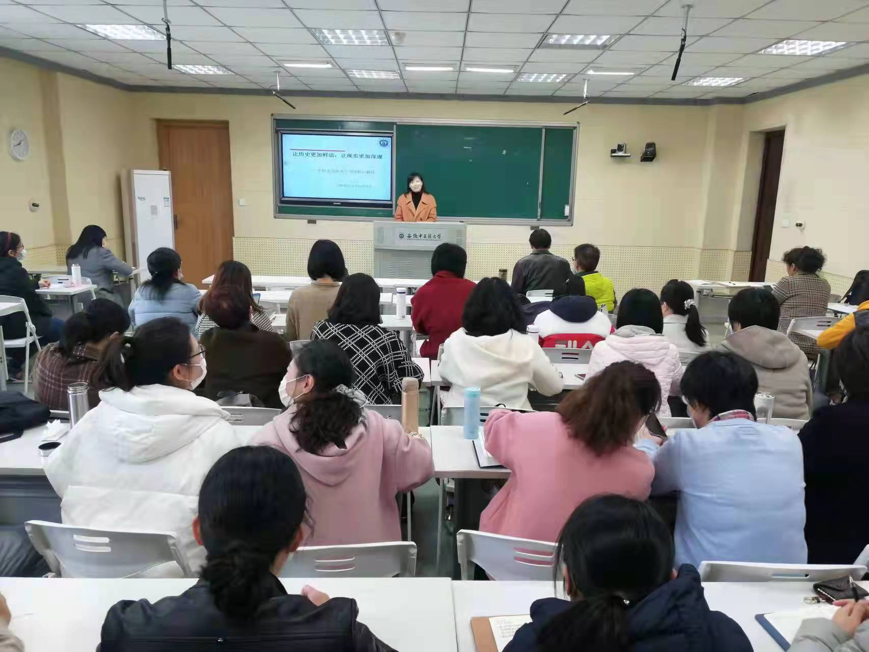 梁祥凤以“让历史更加鲜活,让现实更加深邃——三个历史决议关于领导核心解读”为题,围绕党的百年历史中的三个决议,即1945年4月党的六届七中全会通过的《关于若干历史问题的决议》、1981年6月党的十一届六中全会通过的《关于建国以来党的若干历史问题的决议》和2021年11月党的十九届六中全会通过的《中共中央关于党的百年奋斗重大成就和历史经验的决议》,分析了决议产生的时代背景和深刻意义,指出“万山磅礴,必有主峰”,深刻阐释了中国共产党的领导核心的时代意义。梁教授的宣讲鲜活生动、旁征博引、思考深邃,深受老师们喜爱。