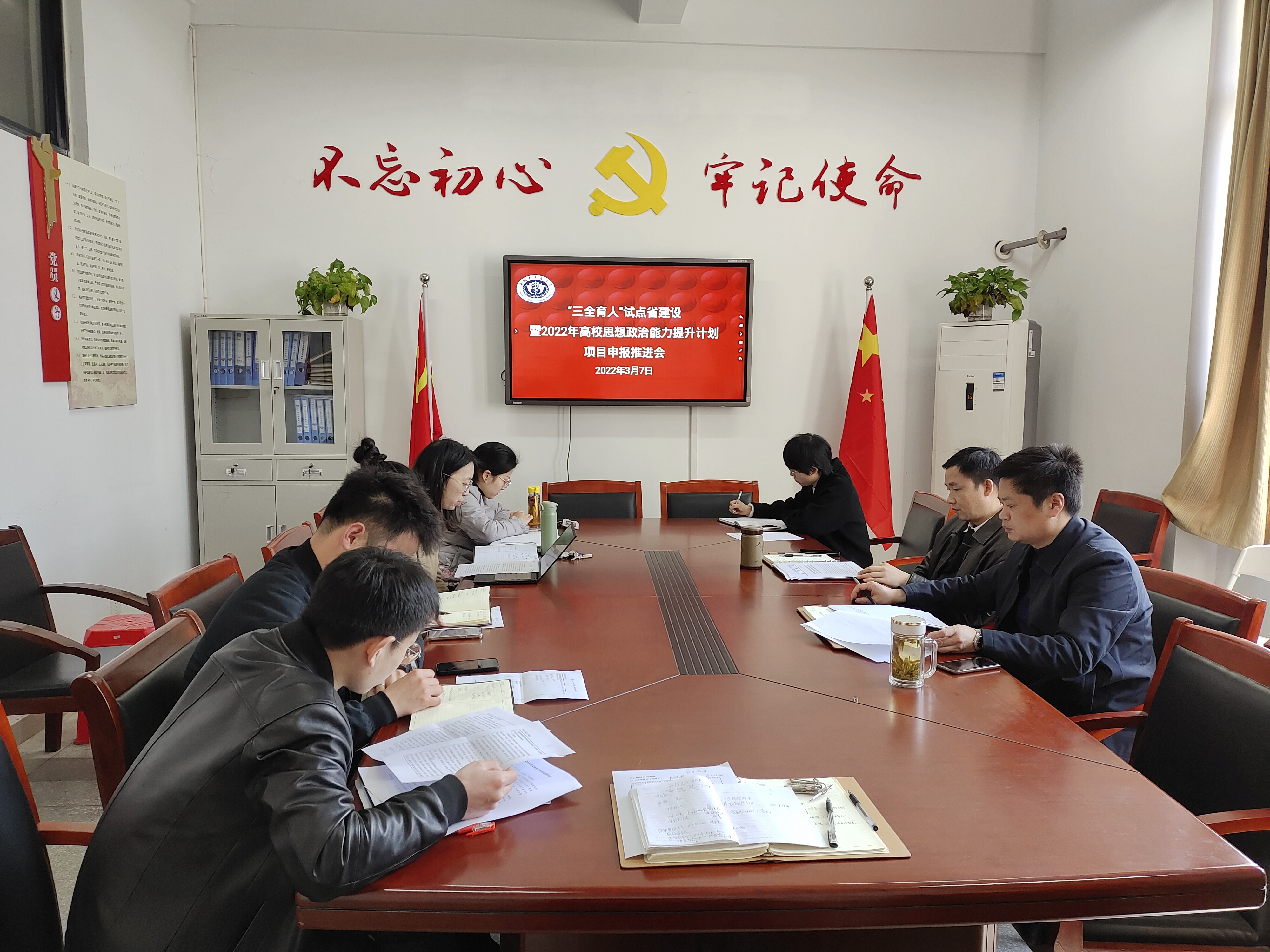 为落实立德树人根本任务,全面提升学院思想政治工作能力,3月7日上午,新2会员管理端召开2022年“三全育人”试点省建设暨高校思想政治能力提升计划项目申报推进会,会议由党总支书记姚为久主持,副院长张筱荣及学院行政、教学、科研、学工等科室相关工作人员参加会议。