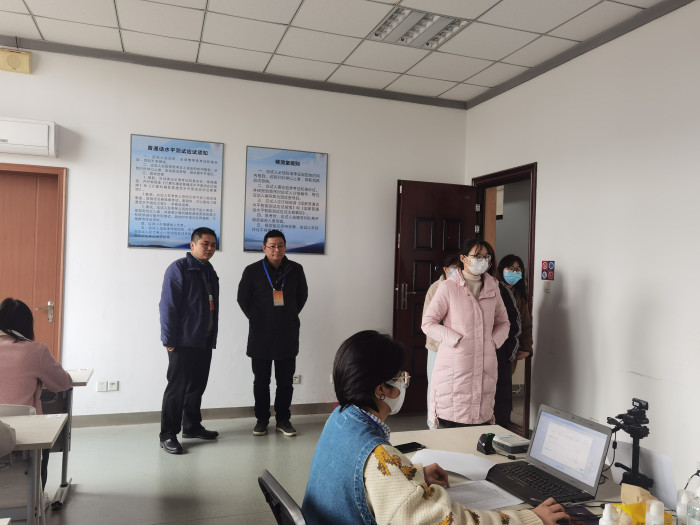 考前,我校测试站对监考教师及学生志愿者开展培训,主要就我校防疫工作政策及安徽省普通话测试中心对考务人员的要求进行传达。整期考试,秩序井然,运行平稳。考试期间,新2会员管理端书记姚为久及教务处副处长沈安鲁等部门负责人到场巡考并予以指导。学校还结合2021年普通话推广周主题活动,以“普通话诵百年伟业,规范字写时代新篇”为题,举办了面向全校的普通话测试专题培训及系列宣传活动,为我校普通话推广工作营造了积极的校园氛围。