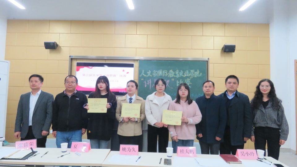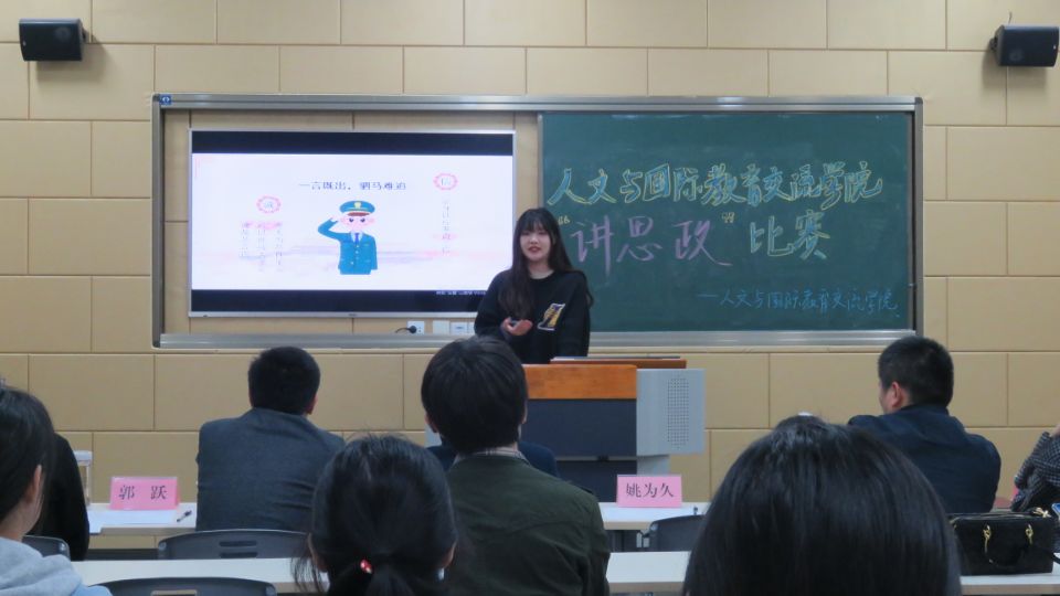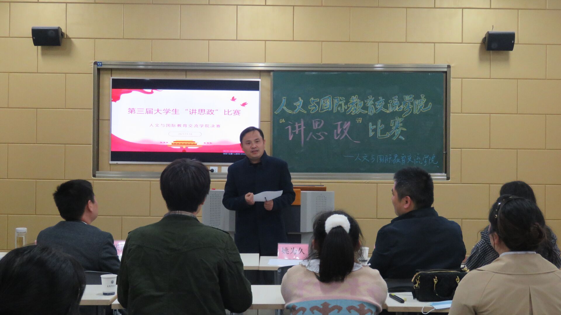 新2会员管理端于11月18日晚在惟新楼176教室举办以诚信为主题的第三届大学生“讲思政”院级选拔赛,安庆师范大学学生处副处长夏斐、我校马克思主义学院副院长郭跃、新2会员管理端副院长张筱荣、院党总支副书记桂大鹏等担任评委。
