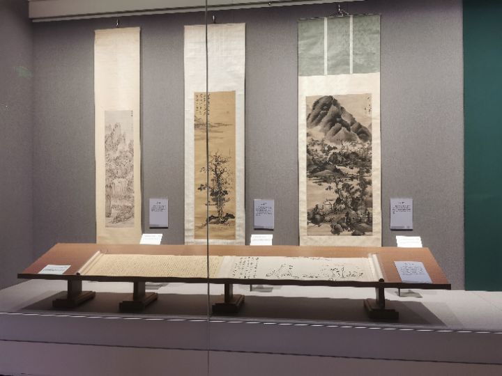 实践团成员摄于安徽省美术馆的新安画派代表作品 中国青年网通讯员 宋雨欣 摄